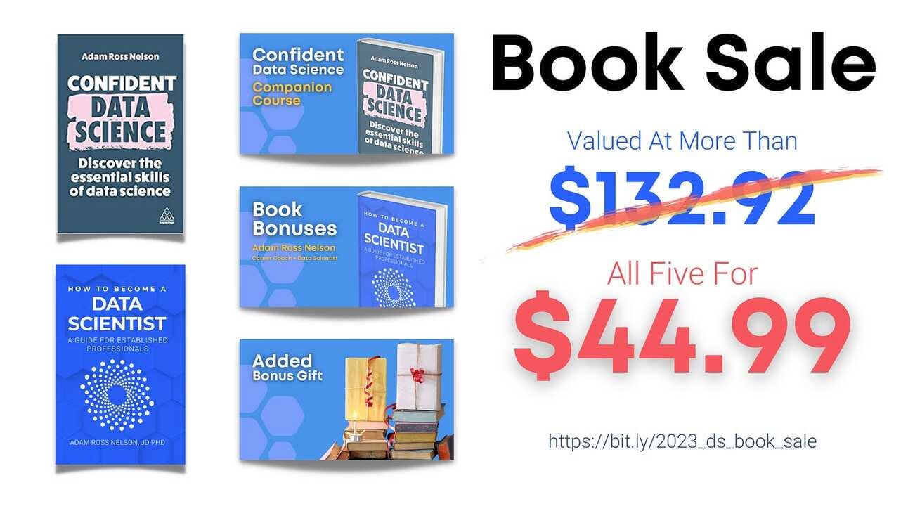Adam is offering a sale right now where you can get all of his books and companion courses on how to break into the data science field, all for less than $50! If you’re still a data science newbie and looking to make your break, check these out!