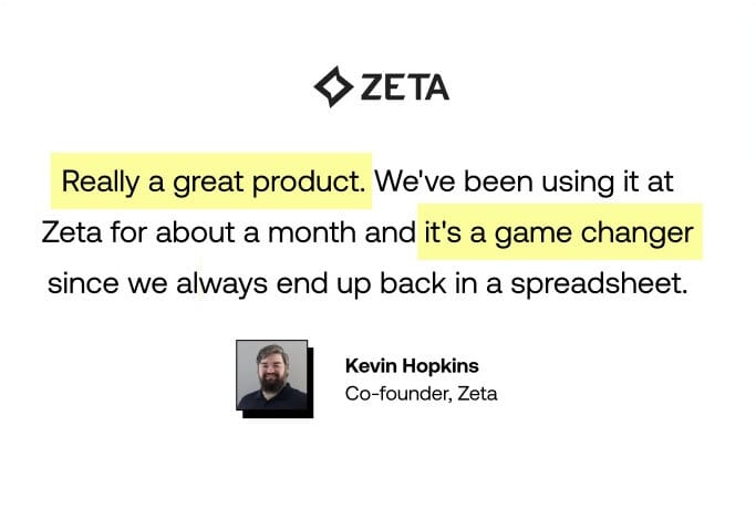 Trust & Validation: The platform is already being hailed as a game-changer by users. For example, Zeta's co-founder, Kevin Hopkins, is already shouting from the streets about how it's been transformative for their operations.