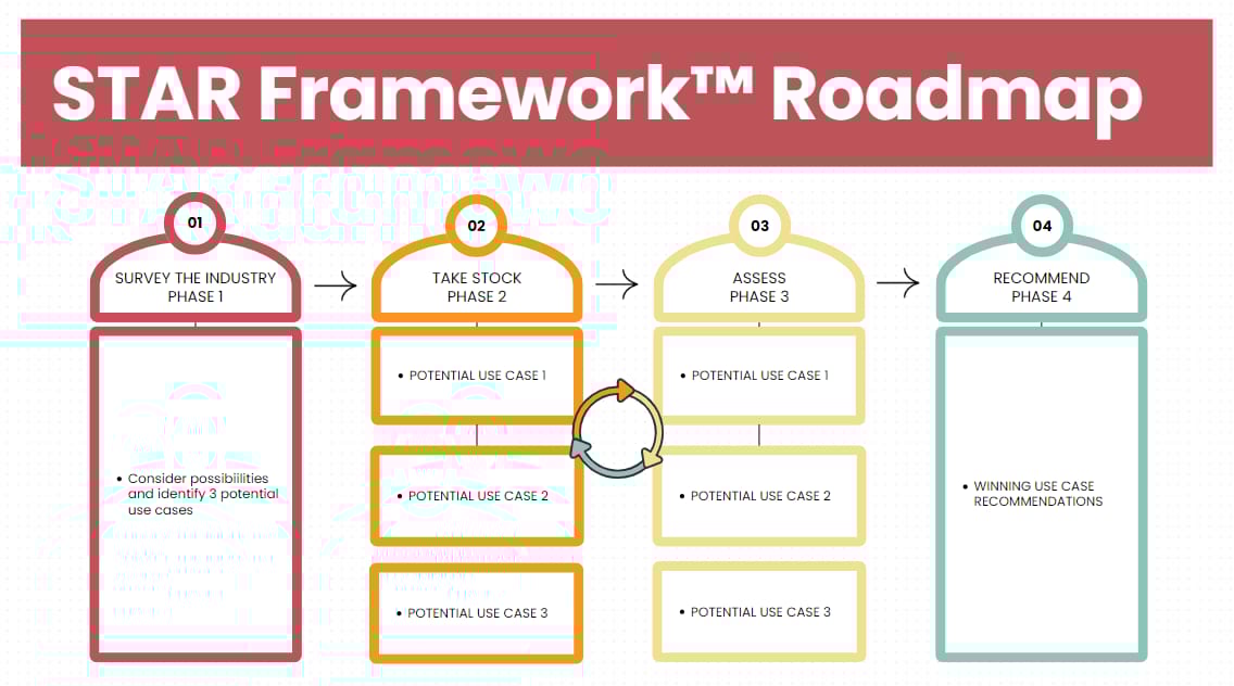 For now, though, just know that Phase 1 of the STAR Framework involves surveying the industry for winning case studies and use cases … so that you can select a few of the winning cases and further evaluate whether they represent feasible wins for your company.