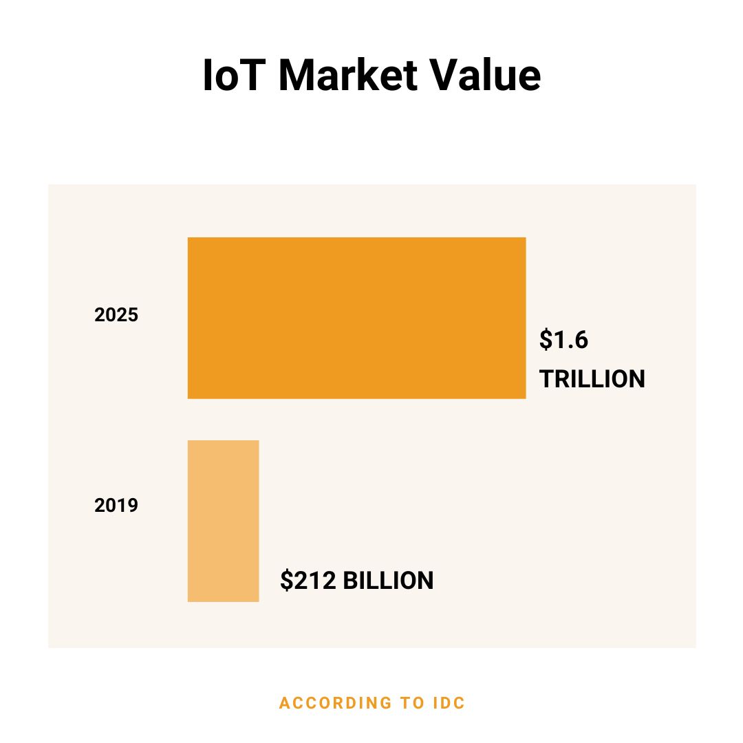 The global #IoT market value is expected to be worth $1.6 Trillion by 2025! THAT’S A 5x INCREASE SINCE 2019 (according to the IDC).